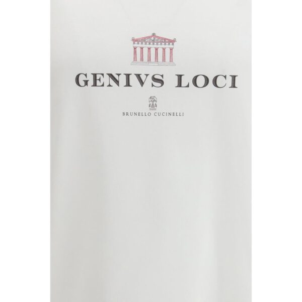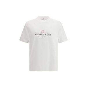 The T-shirt in cotton jersey by Brunello Cucinelli expresses understated refinement through a clean construction that reflects the brand’s meticulous approach. The round neck shapes a neat, balanced line, while the double-stitched hems on sleeves and bottom add discreet precision to the silhouette. The “Genivs loci” inscription introduces a cultured and distinctive touch, turning the garment into a subtle statement of contemporary identity. The regular fit enhances an effortless outline, offering a T-shirt that blends simplicity, elegance and the unmistakable character of Brunello Cucinelli.