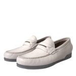 Dolce & Gabbana - White Gray Leather Slip Mocassin Shoes Loafer