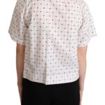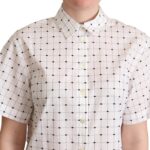 Gorgeous brand new with tags, 100% Authentic Dolce & Gabbana shirt is crafted from the finest quality cotton. The half-sleeved shirt has a polka dots pattern in black shades throughout.