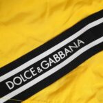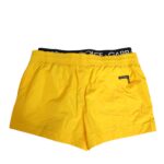 nmen’s swim shorts, crafted from lightweight nylon in a vibrant yellow shade. Features include a drawstring elastic waistband, black logo elastic detail, and side logo tape for a sporty finish. Comes with side pockets and a back zip pocket with logo zipper pull.