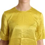 Gorgeous brand new with tags, 100% Authentic Dolce & Gabbana women silk t-shirt features a round neck, short sleeve and back closure with fastening buttons.